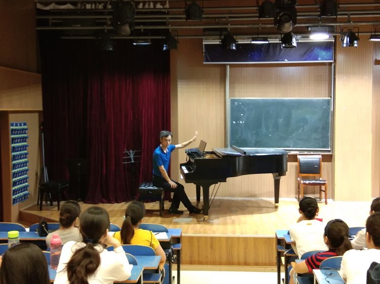 8月9日,为提高“省培”学员合唱指挥能力,太阳成集团tyc539副经理陈新宇教授在艺术楼八音讲堂为“省培”学员讲授合唱指挥课。