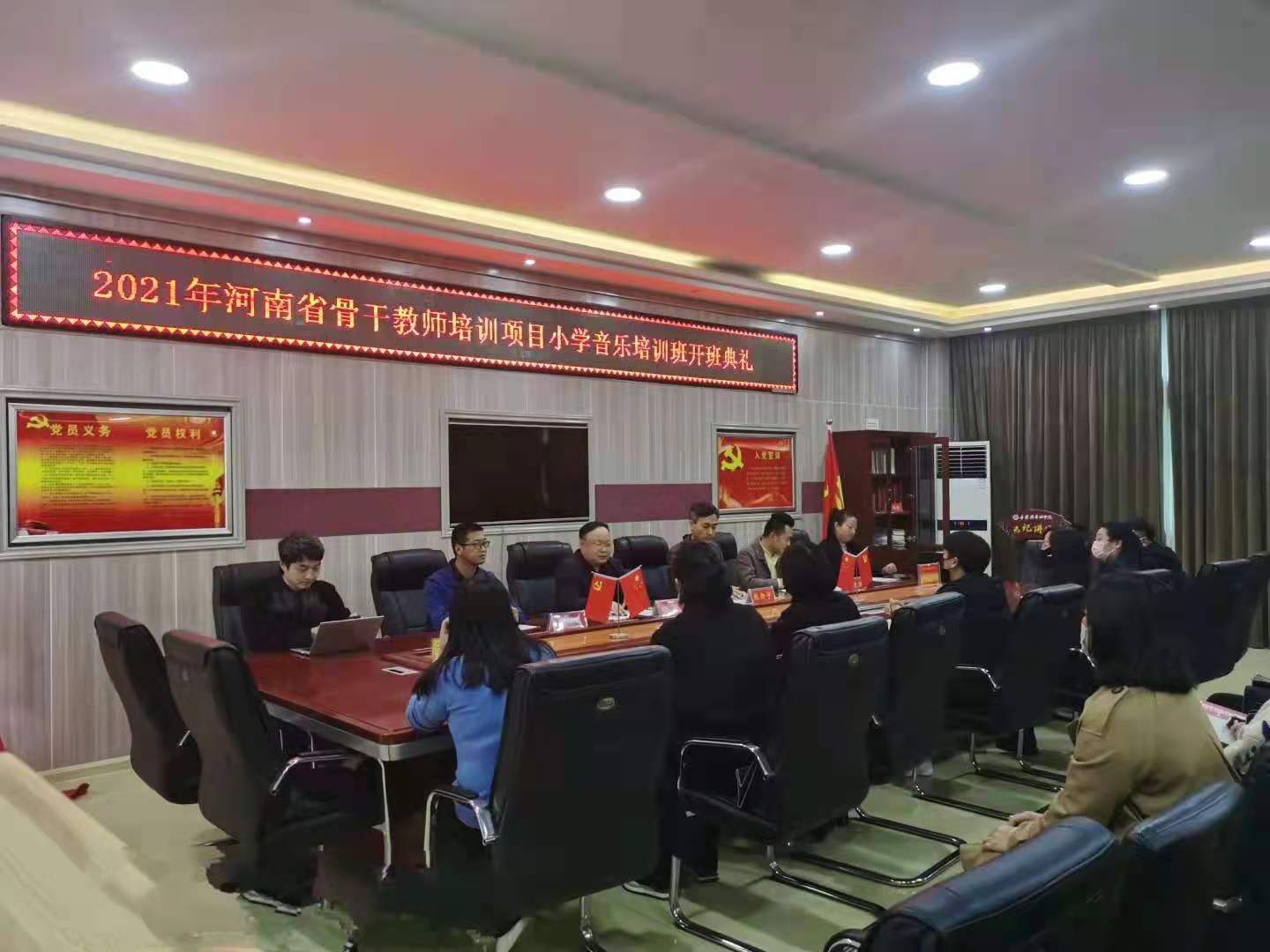 10月23日上午,2021年河南省骨干教师培训项目小学音乐培训班开班典礼在艺术楼三楼会议室举行。太阳成集团tyc539经理陈新宇、副经理任远、专业班主任梁凯枫博士和生活班主任曹阳老师等出席。来自全省各地的43名小学音乐骨干教师参加开班仪式。开班仪式由任远主持。