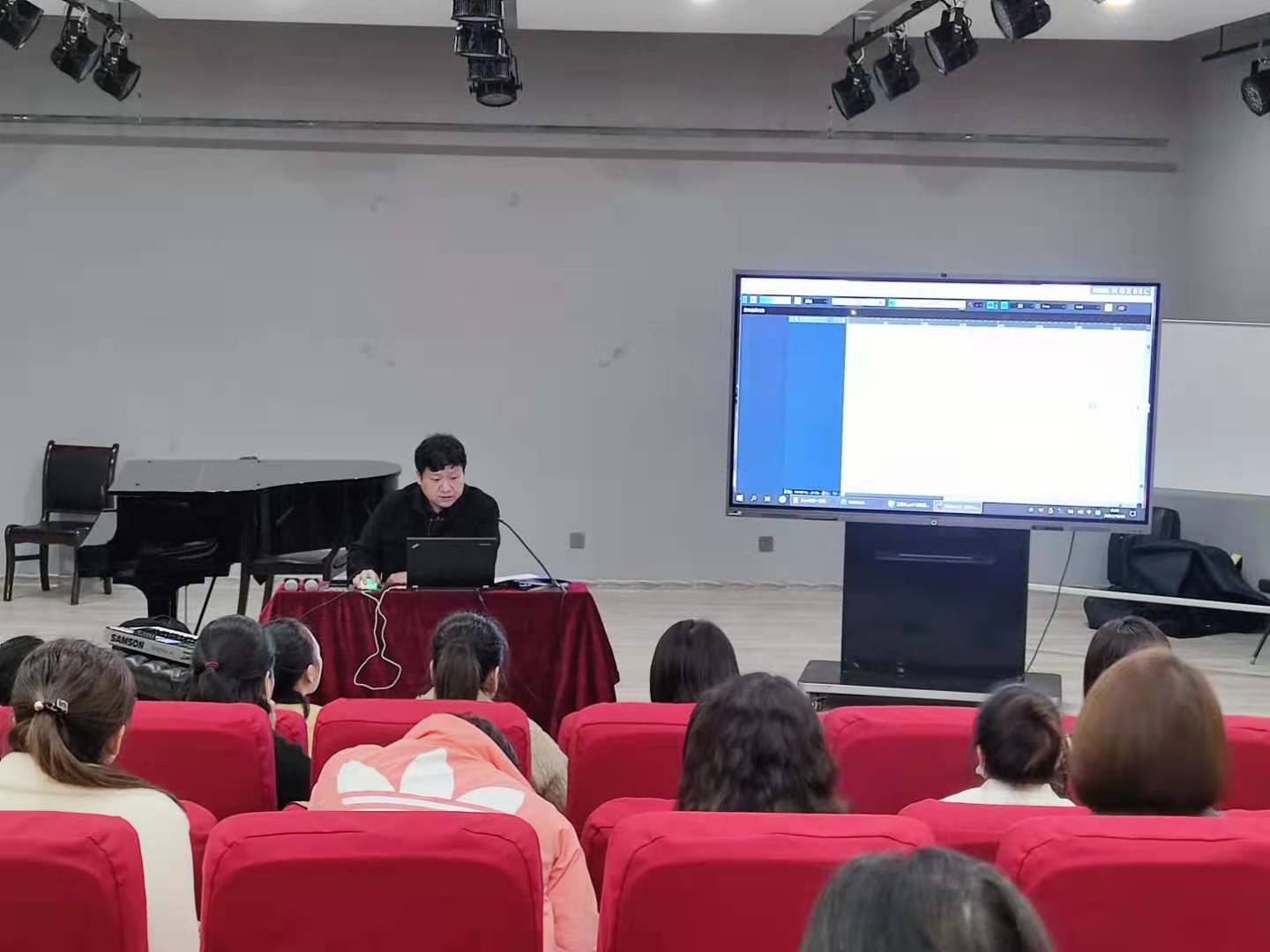 2021年10月26日上午,公司青年教师王浩在艺术楼八音讲堂为本次省培学员讲授《计算机音乐制作》,让学员们明白了用一台普通的电脑就可以制作出好的音乐。