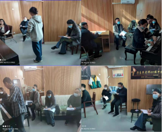 17-18日两天,各听评组成员分别在艺术楼、教九楼、琴房楼深入《现代舞技术2》、《豫南传统音乐》、《歌曲写作基础》、《音乐理论》、《视唱练耳1》、《视唱练耳3》、《声乐》、《钢琴》等课堂,与员工们一起认真听课,与师生们进行深入交流,并就进一步提高课堂教学质量提出建设性的意见和建议。