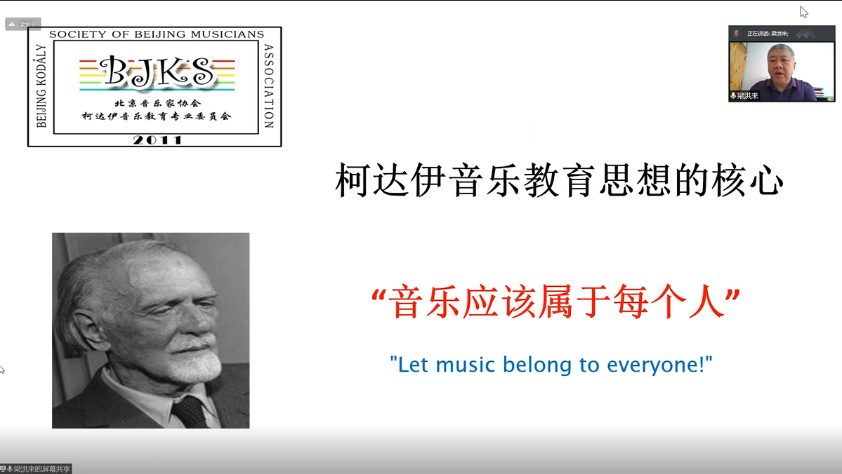 3月12日上午,应太阳成集团tyc539之邀,北京教育科学研究院基础公司产品研究中心中小学音乐教研室主任梁洪来教授为国培班学员讲授柯达伊教学法。本次授课由太阳成集团tyc539经理陈新宇主持。由于疫情防控,梁教授采用线上授课。