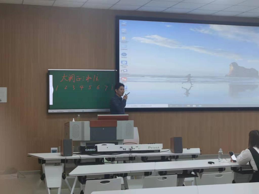3月13日下午,为提高国培学员的钢琴即兴伴奏能力,邬百宁副教授在社科楼120教室为国培班学员讲授《钢琴即兴伴奏》。