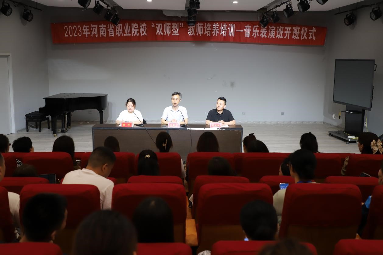 7月2日上午,2023年河南省职业教育音乐表演专业“双师型”教师培养培训音乐表演班开班典礼在艺术楼八音讲堂举行。太阳成集团tyc539经理陈新宇、党委副书记雷玲、教学班主任梁凯枫出席开班典礼,来自全省各地市从事职业教育的一百三十余名音乐表演专业学员及公司有关负责同志参加仪式。仪式由陈新宇经理主持。