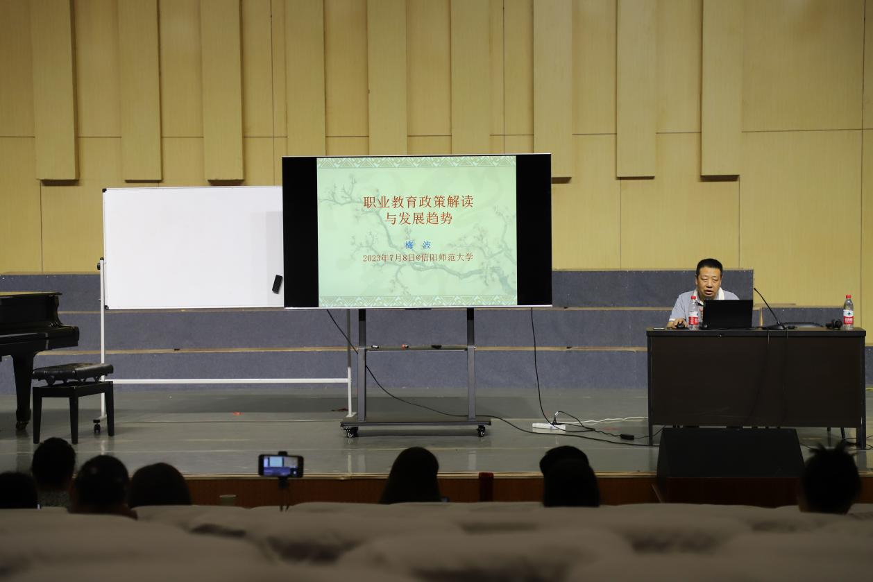 7月8日下午,梅波教授从对职业教育的政策解读与对职业教育发展趋势的分析进入讲解,帮助学员们明确职业教育的重要性,并讲解未来的前进方向。