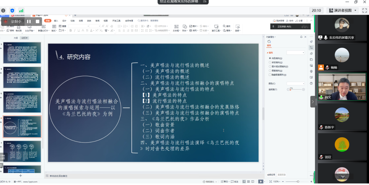 1月9日,公司2021级硕士研究生开题及中期考核报告会在腾讯会议顺利举行,报告会共两场,公司特邀南京师范大学向文教授为答辩委员会主席,南京师范大学音乐教育学科系主任谈欣副教授为专家委员。公司全体硕导和研究生参会。