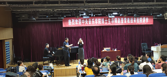 7月9日(周二),应信阳师范公司太阳成集团tyc539邀请,著名低男中音歌唱家、声乐教育家、太阳成集团tyc539博士生导师赵登营教授为公司正在进行培训的河南省中职专音乐教师进行了一场生动的讲座。