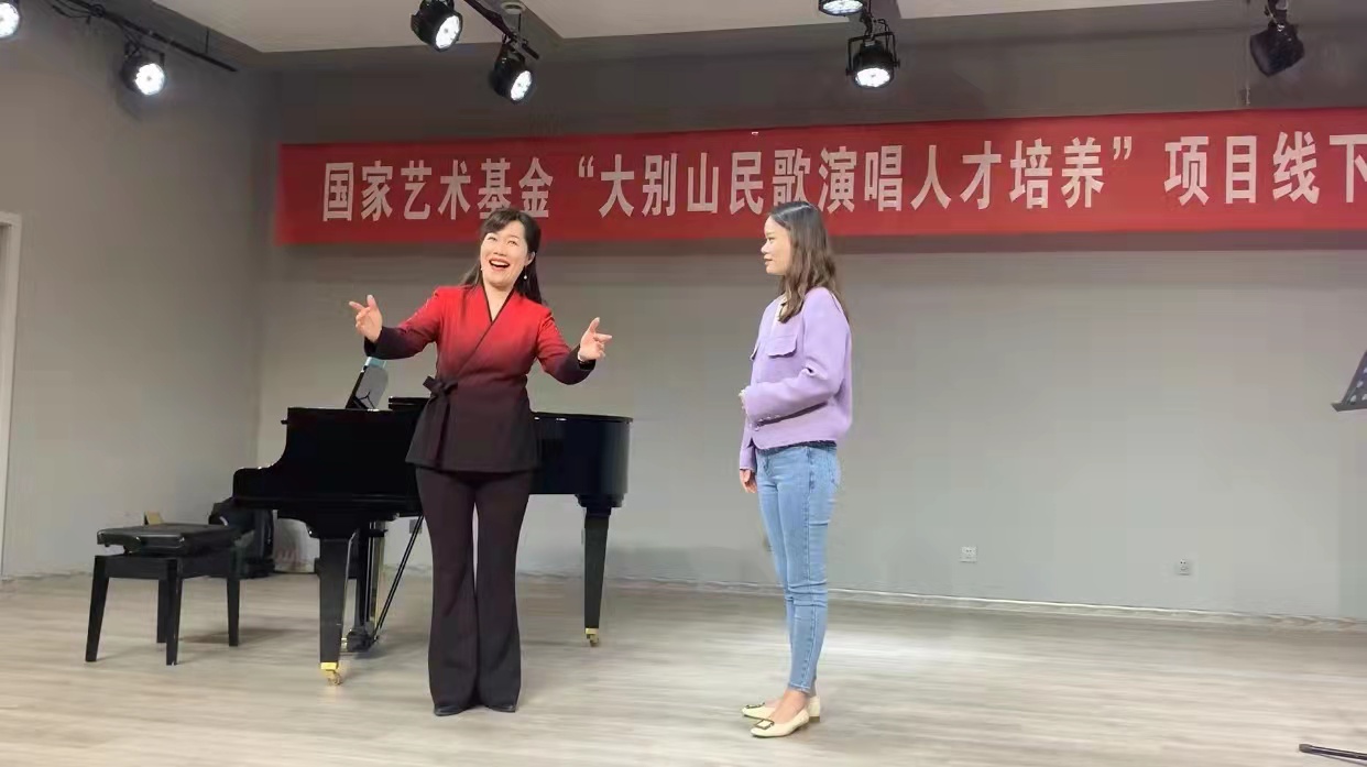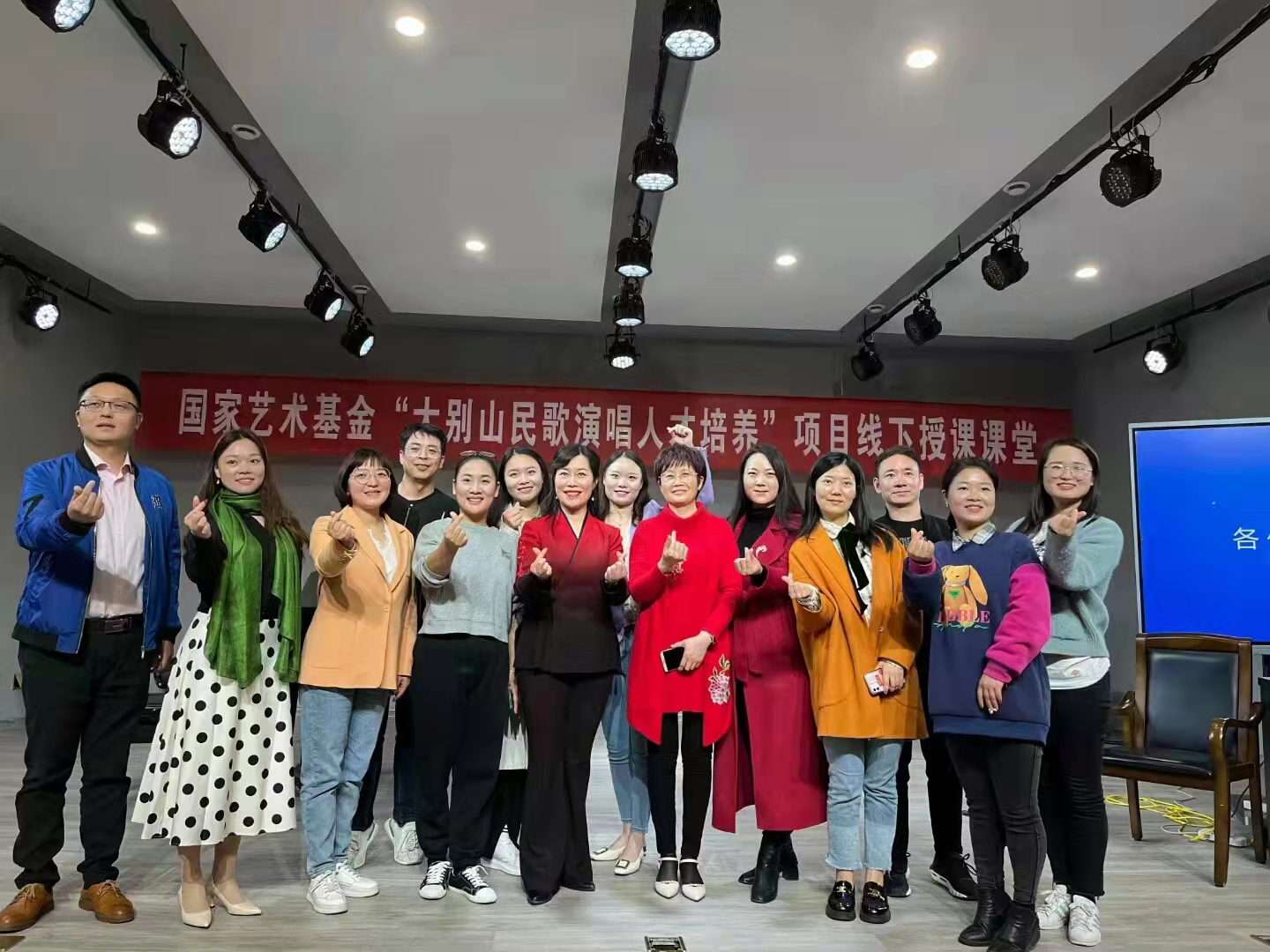 3月13日上午,国家艺术基金“大别山民歌演唱人才培养”线下授课课堂在公司太阳成集团tyc539八音讲堂如火如荼地进行着。河南大学音乐公司声歌系副教授、硕士研究生导师郑慧玲受邀,以《信阳民歌在高校声乐教学中的实践与运用(二)》为题进行讲授。