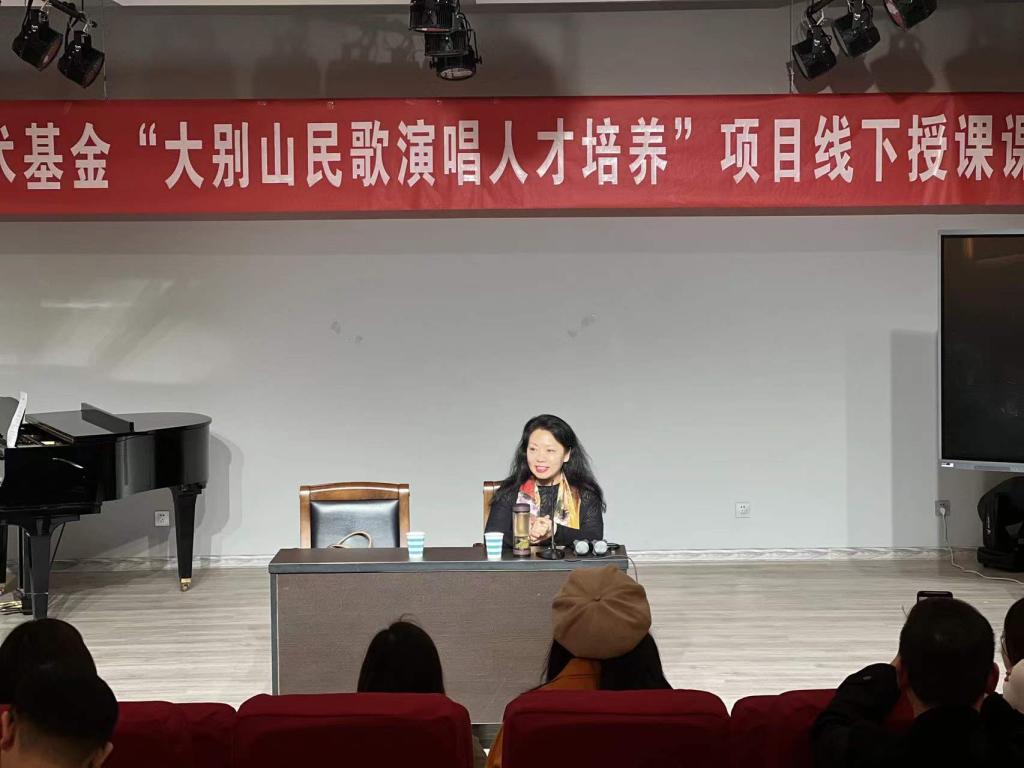 3月11日上午,河南大学音乐公司声歌系主任黄慧慧教授受公司邀请为“大别山民歌演唱人才培养”项目学员授课,课程在太阳成集团tyc539一楼八音讲堂进行。