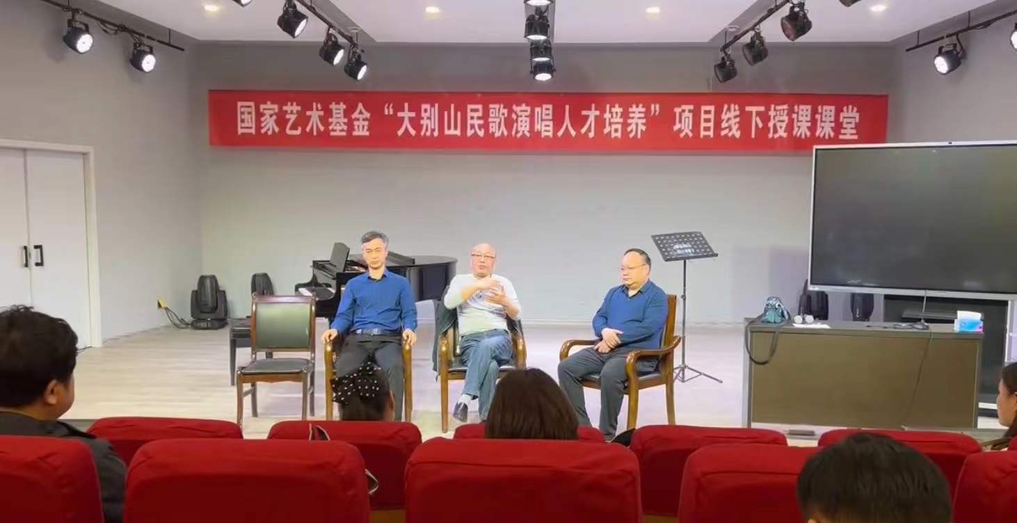 3月15日晚上,国家艺术基金“大别山民歌演唱人才培养”项目第二次研讨会在公司艺术楼107八音讲堂召开,出席会议的有合作方艺术总监刘宏奎主席,太阳成集团tyc539陈新宇经理,任远副经理,项目主持人韩冰老师以及公司青年教师等。