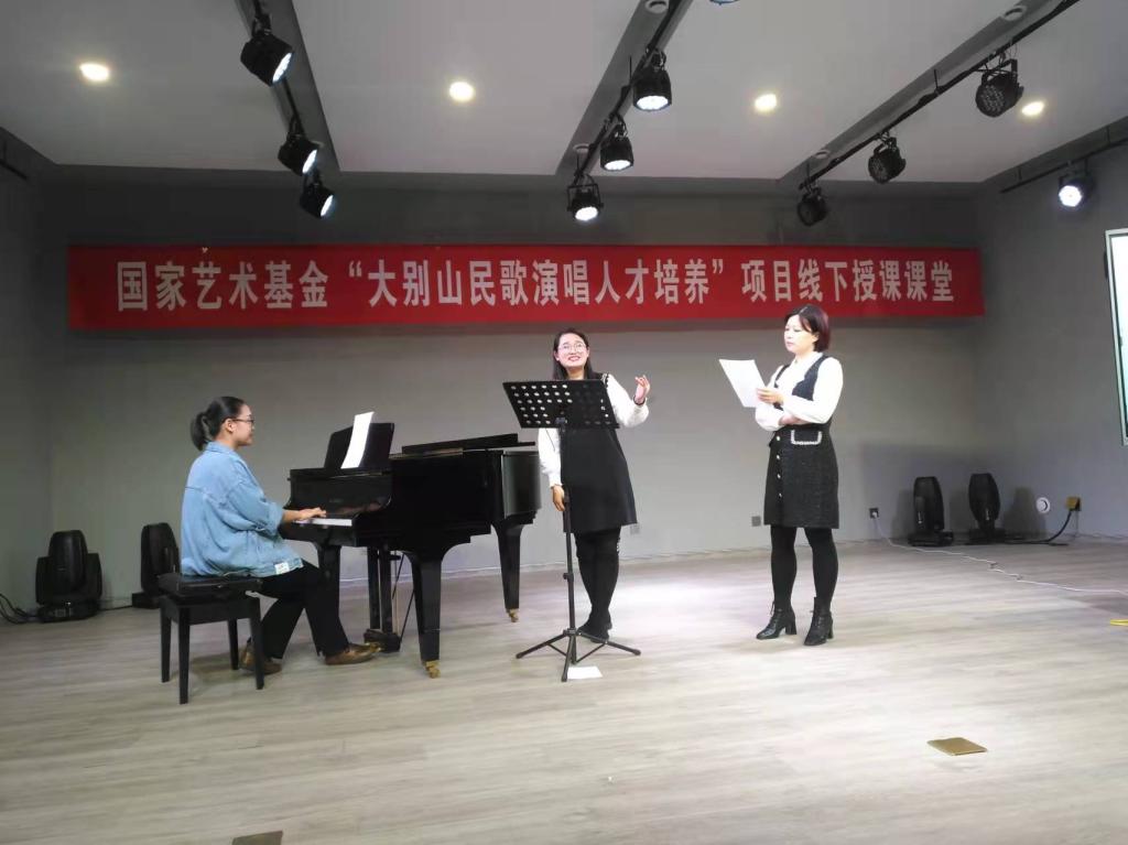 3月15日下午,国家艺术基金“大别山民歌演唱人才培养”线下授课课堂在公司如期进行。河南省著名女高音歌唱家陈静,受邀来到公司太阳成集团tyc539八音讲堂,以《声乐舞台上的表演和演唱》为题进行线下授课。