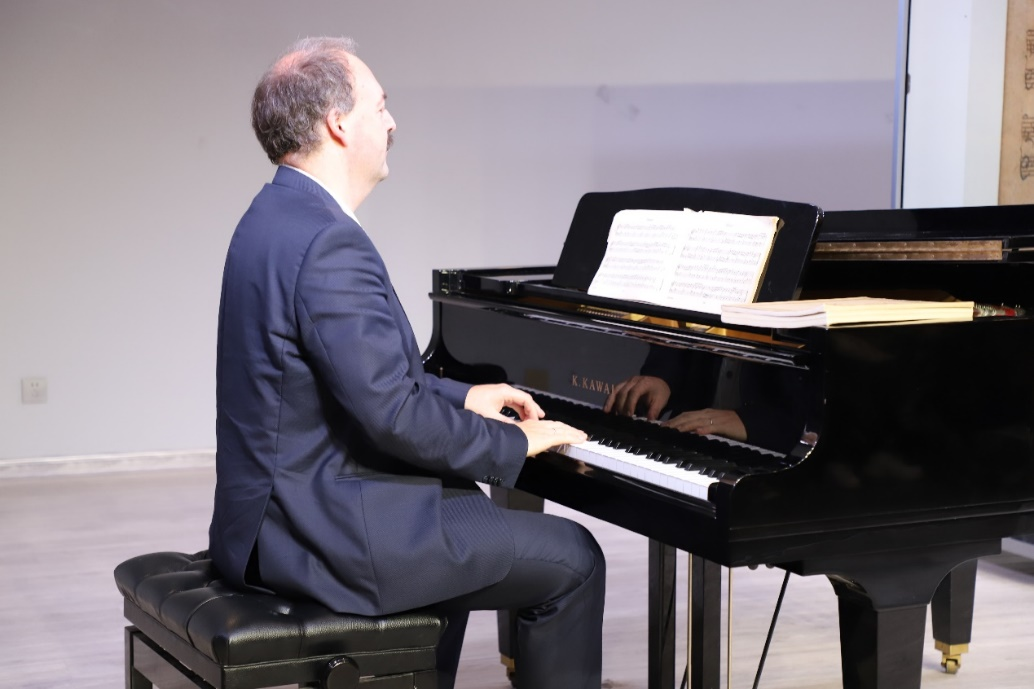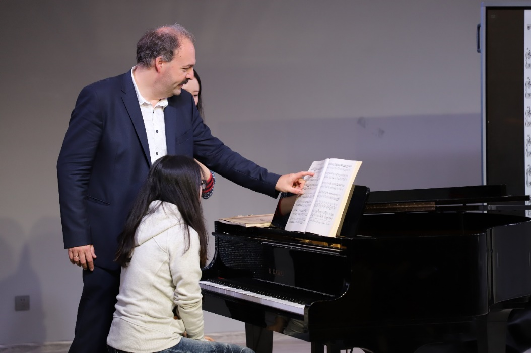 三、在现场教学环节中针对员工演奏的具体问题做出指导。Dinyés Soma教授为公司2022级艺术硕士李想同学指导了《升C大调前奏曲,BWV848》。教授指出“前奏曲后半部分左右手两条隐伏旋律构成的极富力度的反向扩张,要在保证音乐准确性的基础上,演奏者应尽可能的表现出自己对音乐的理解。”