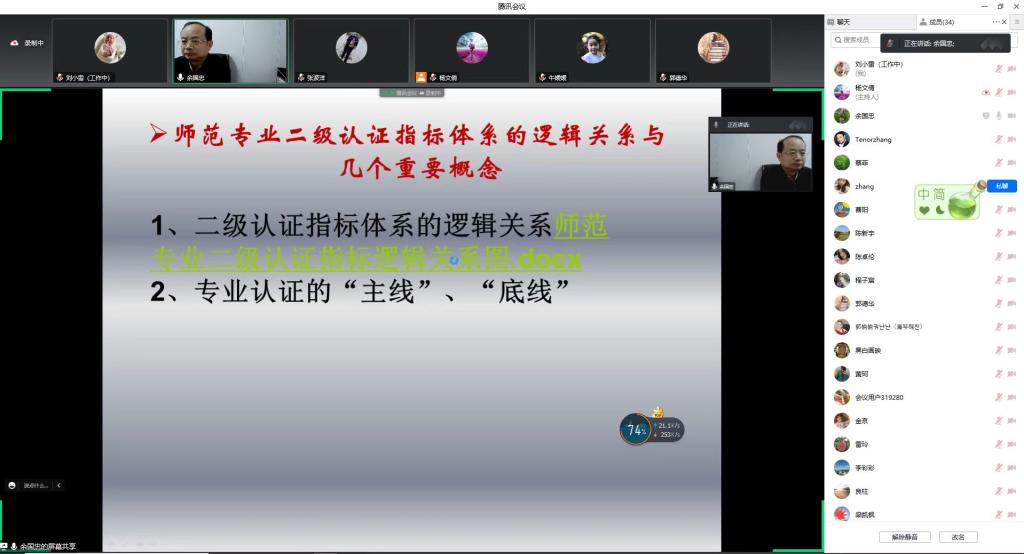 为更好地掌握师范类专业认证的相关政策,扎实推进公司师范类专业认证自评自建工作,11月11日下午,公司特邀请公司公司产品评估中心主任余国忠教授,线上开展师范专业认证有关问题专题培训。公司党委书记周文勇、经理陈新宇、副经理任远、党委副书记雷玲和师范专业认证工作小组成员参加了会议。会议由经理陈新宇主持。