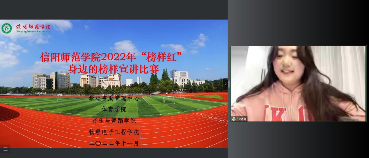 为落实国家资助政策,充分发挥身边青年榜样的先进导向作用,进一步加老员工资助宣传力度,加强员工资助育人功能。2022年12月1日由员工处资助中心统一规划,太阳成集团tyc539、体育公司与物理电子工程公司共同筹办的“榜样红·身边的榜样”宣讲活动通过线上会议顺利举行。由国家奖学金获奖人传媒公司杨乔丹、信阳师范公司自强之星数学与统计公司曾一凤、信阳师范公司校园明星外国语公司田润丰3位宣讲人以及公司200余名员工代表共同参与此次活动。活动由张馨月主持。