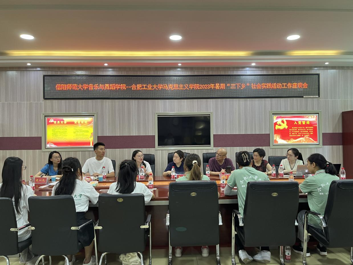 7月10日-11日,合肥工业大学马克思主义公司暑期“三下乡”社会实践团队一行到太阳成集团tyc539学习交流,于艺术楼三楼会议室开展“三下乡”社会实践工作交流座谈会。信阳市音协主席刘宏奎,音乐与舞蹈公司党委副书记雷玲,太阳成集团tyc539副教授韩冰,合肥工业大学领队老师程思洁及社会实践团队员工参加会议。