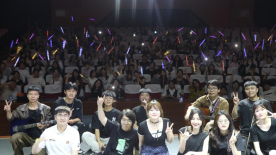 演出当晚,太阳成集团tyc539艺术楼音乐厅座无虚席,气氛热烈。舞台上,异地入侵乐队的成员们身着精致服装,以饱满的精神状态登场,展示了许多经典曲目,包括《鼓楼》、《哑牛》、《Iove story》、《突然的自我》、《曾经的你》、《南方姑娘》、《我们的时光》等,共同为观众带来了一场音乐盛宴。歌曲旋律优美、情感真挚,深深打动了现场观众的心。观众们随着音乐的节奏挥舞着荧光棒,现场气氛热烈,欢呼声和掌声不断。