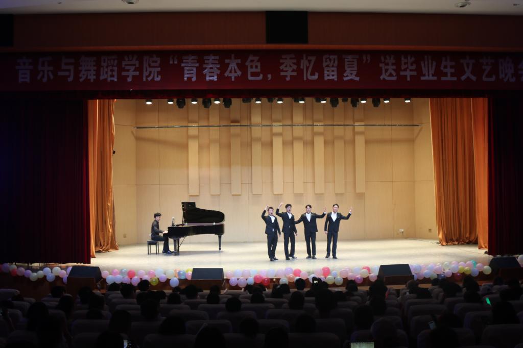本次晚会以“青春本色,季忆留夏”为主题,节目丰富多彩,涵盖器乐、演唱、舞蹈、乐队等多种表演形式,为观众带来了《友谊地久天长》《书简》《大写的中国》《白日梦蓝》《起风了》等14个节目。晚会在街舞协会带来的舞蹈《遇见》中火爆开场,女生独唱《星星在唱歌》旋律柔和清新,带领现场观众走进毕业离别淡淡的忧伤;一首《友谊地久天长》勾起大学四年美妙的回忆,唱出了对同窗情谊、对母校的依依不舍;声乐歌曲《我的太阳》用娴熟的演唱技巧展现出声乐的魅力,表达了对社会生活的向往;朗诵《大写的中国》铿锵有力,表达了学子们把个人梦融入祖国腾飞的坚定决心;舞蹈《书简》、合唱《九张机》《那些年》,拉丁舞《狮吼》,街舞《Shaking the word》轮番上演,不断推进晚会走向高潮。晚会期间播放了视频,公司领导老师与学弟学妹们依次送上对毕业生的美好祝福。由吉他协会带来的《披星戴月的想你》《白日梦蓝》鼓励毕业生们不忘初心,大胆追梦。最后晚会在合唱《起风了》中圆满落下帷幕。