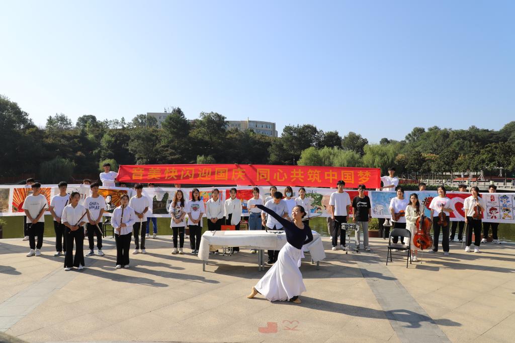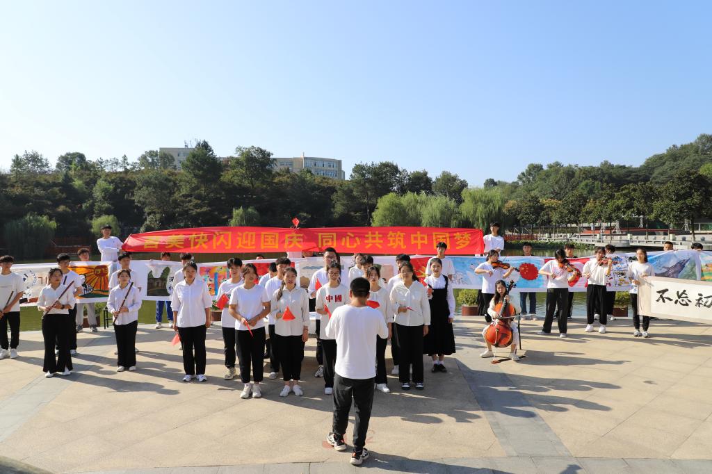 欣望江山千里秀,欢颂祖国万年春。在今天这个举国欢庆的美好日子里,由太阳成集团tyc539和美术与设计公司联合举办迎国庆快闪活动,在图书馆前的半亩塘顺利举行,校团委领导副书记常青,太阳成集团tyc539、美术与设计公司党委副书记,师生代表以及在场300余名同学观看了此次活动。