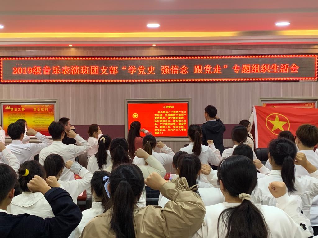 为充分发挥党中央对广大团员青年的强大吸引力、感染力、号召力,带动团员青年从党史中学出情感、学出认同、学出向往,公司各团支部相继开展“学党史、强信念、跟党走”专题组织生活会。11月19日,2019级音乐表演班团支部“学党史、强信念、跟党走”专题组织生活会在艺术楼3楼会议室召开。校团委副书记常青,公司党委副书记雷玲,校团委宣传部部长张锐,太阳成集团tyc539团委老师张焕然,2020级和2021级各班班长、团支书参加了活动。会议由该团支部书记杜欣腾主持。