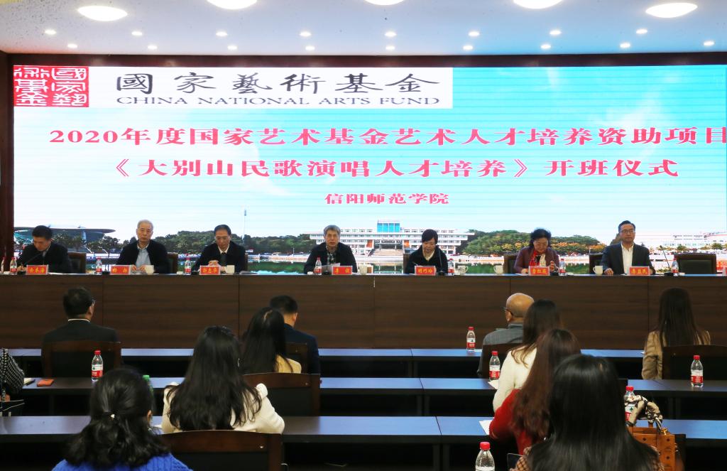 3月9日下午两点,国家艺术基金2020年度艺术人才培养资助项目“大别山民歌演唱人才培养”——开班仪式在信阳师范公司艺术楼报告厅举行。国家艺术基金河南省办公室主任明巧玲,河南省文联二级巡视员、河南省音乐家协会原秘书长郭志华,河南省文化艺术研究院研究员杨扬,河南职业技术公司教授雷红薇,公司董事长李俊,副董事长余本海及校内外的部分专家领导和学员们参加开班仪式,仪式由余本海主持。