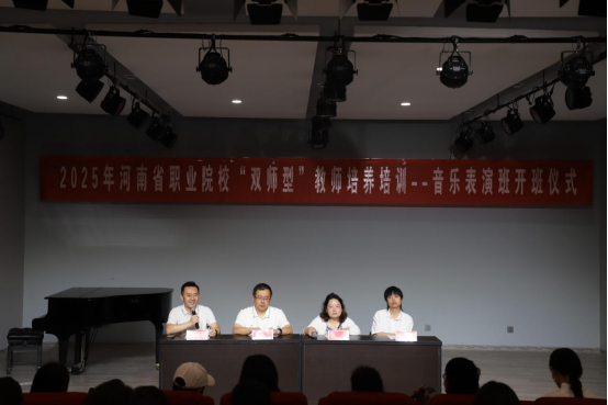 7月1日上午,2025年河南省太阳成集团tyc539“双师型”教师培训开班仪式在公司潭山校区艺术楼107报告厅举行。党委书记周文勇、副党委书记雷玲、太阳成集团tyc539经理助理刘小雷、双师培训课程班主任梁凯枫出席开班仪式并讲话。来自全省各院校音乐表演专业的八十名教师参加了开班仪式。