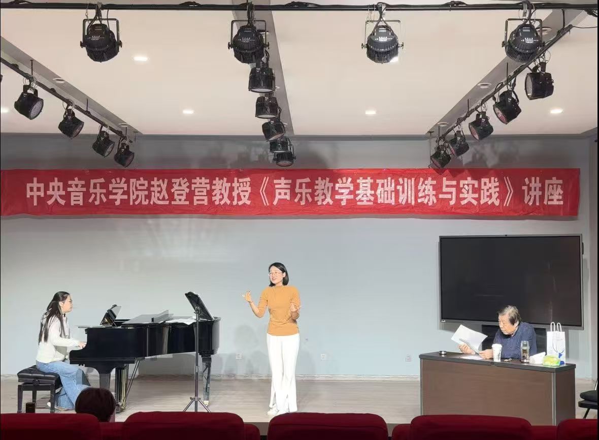 讲座现场,公司声乐专业教师依次登台演唱展示。赵登营教授以声乐演唱核心技巧为切入点,围绕咬字归韵的精准把控、气息运用的科学方法、腰腹力量的协同发力、声带发声的基础原理,以及作品内涵解读与情感表达等关键维度,进行了系统性讲解,让在场师生对声乐教学的本质规律形成了更深刻的认知。针对教师演唱中暴露的个性化问题,赵教授逐一开展一对一精准指导,直击专业痛点,有效提升了教师们的演唱技能与教学实践能力。
